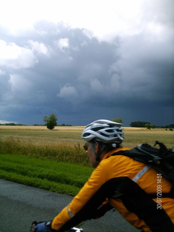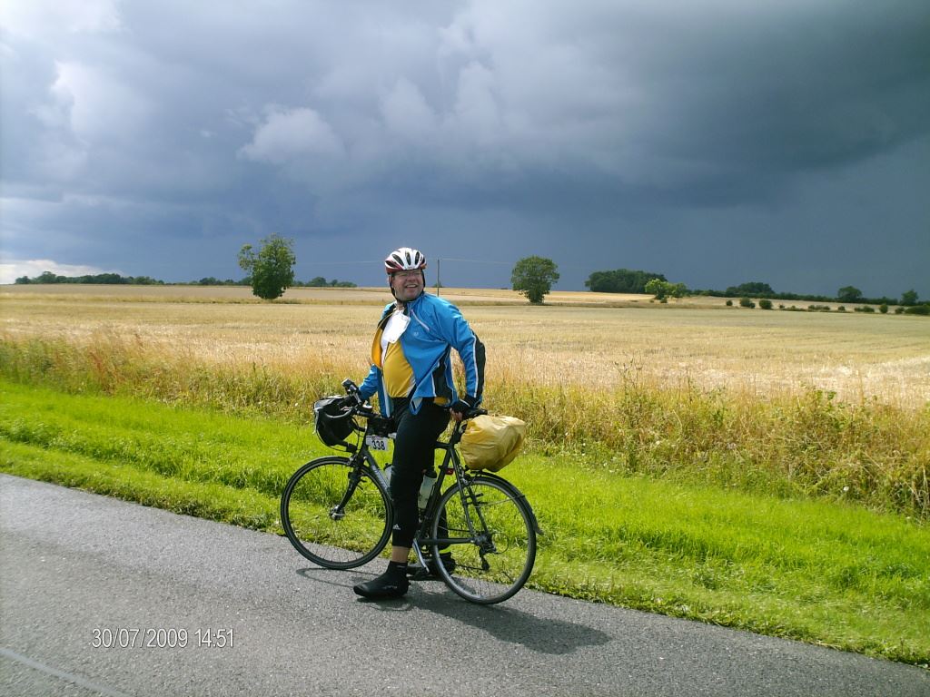 Am Donnerstag, den 30.7 fuhren wir gegen 6 Uhr weiter. Die Sonne kam raus, aber es wurde nicht richtig warm. Durch Lincoln, wo wir zum Glück uns an ortskundige Briten hängen konnten, kamen wir zur Kontrolle nach Washingborough, wo wir uns (mal wieder) voll fraßen und den nächsten Schauer aussaßen. Bis Thurlby gab es richtiges Aprilwetter: Blauer Himmel und Sonnenschein wechselten sich mit waagerecht anflutenden Gewittern und Schauern ab, die mühselig dem Wetter abgetrotzten trockenen Schuhe verwandelten sich wieder in Liliputaner-Badewannen, in denen das Wasser lustig hin und her schwappte beim Treten (das Quietsche-Entchen war wohl der Fußpilz...) Von Thurlby bis Gamlingay war tolles Wetter, es bildete sich eine schöne, internationale Gruppe: wir 2 Deutsche, ein Norweger, ein Brite mit Liegerad, Kanadier. Wir schnackten bei gemütlichen 20 km /h. Klaus und ich wurden für Vater und Sohn gehalten und ich auf 18 Jahre geschätzt! Wozu Schlafentzug nicht alles führt! In Gamglingay schliefen wir 2 Stunden und machten uns am Freitag, den 1.8 um 1 Uhr nachts auf die letzten km bis London. Klaus und ich fuhren zusammen mit einem Norweger (Name haber ich leider vergessen). Unser Plan war, vor dem Berufsverkehr im Ziel zu sein, und das klappte auch gut. Die Nacht blieb regenfrei und dank der sehr guten Routenbeschreibung haben wir uns auch nicht verfahren. Morgens um 5 Uhr waren wir dann im Ziel nach 111:30 Stunden! Km-Leistung 225 (Do) und 65 km (Fr).
